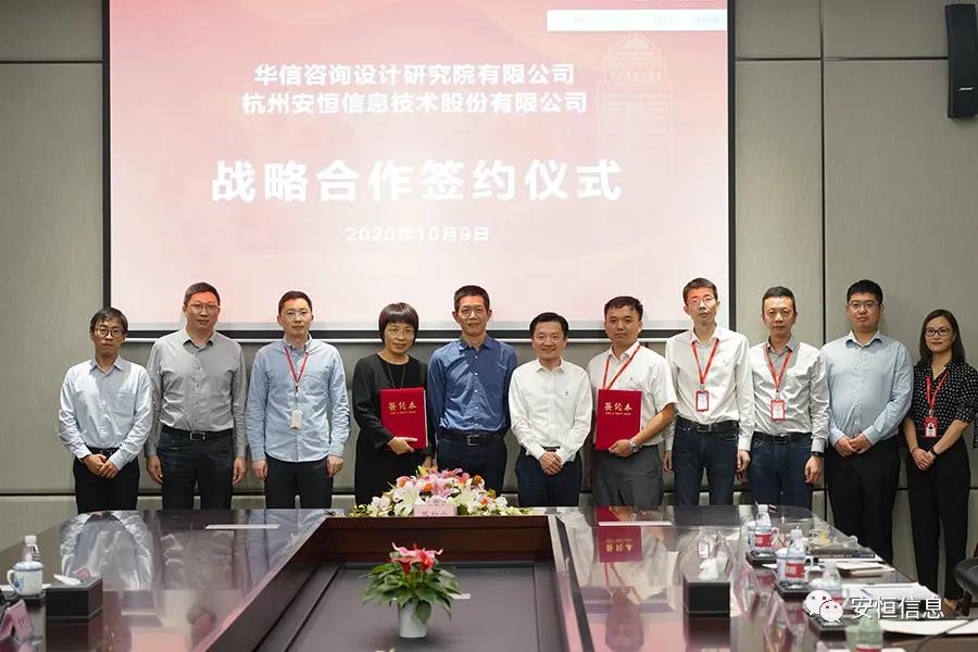 10月9日,华信咨询设计研究院有限公司与金年会信息技术股份有限公司达成战略合作。华信咨询设计研究院有限公司总经理王鑫荣、金年会信息技术股份有限公司董事长范渊等出席签约仪式,华信设计副总经理章建聪、安恒信息高级副总裁张小孟代表双方签署战略合作协议。