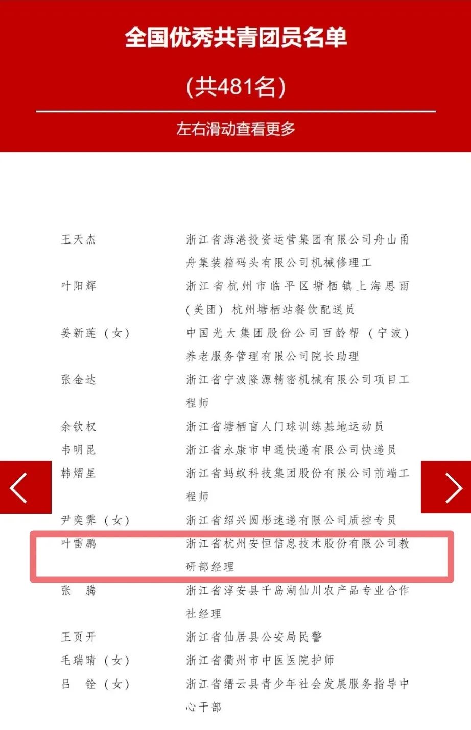 祝贺!安恒信息叶雷鹏荣获全国优秀共青团员荣誉称号
