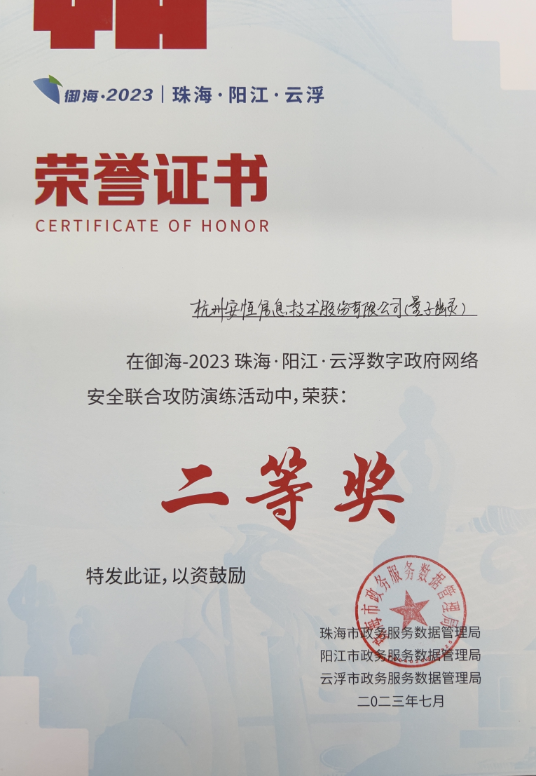 再添佳绩!安恒信息荣获御海2023联合攻防演练二等奖!