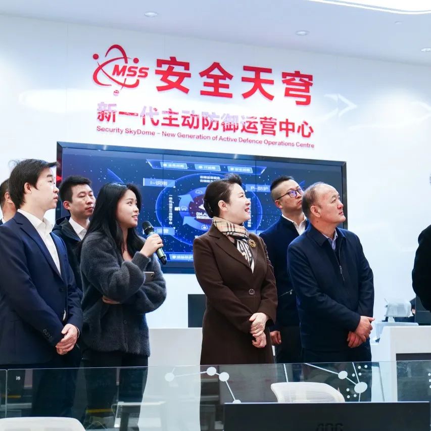 其间,梁昆一行观摩了安恒信息安全创新体验中心及警企联合实验室。深度了解了安恒信息的发展历程、未来战略和取得的前沿科技成果,着重考察了安恒信息在数据安全及公安网安相关方面的合作成果,观摩了 MSS亚运天穹——新一代主动防御安全运营中心及其为杭州亚运会提供全天候、全场景、全过程、全闭环的安全运营保障服务的情况。