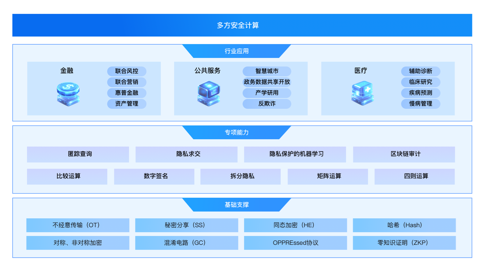 - 不同部门(如交通、公安、环保等)需要协同分析数据(如交通流量、监控数据、污染源信息),以提升业务水平,但各部门的数据可能涉及敏感信息或业务机密,无法直接共享。通过分布式隐私计算,各部门可以在数据不出本地的情况下协同分析,共同生成整体的分析结果(如实时交通优化方案、污染预警等),既提高了城市治理水平,又避免了数据泄露的风险。
