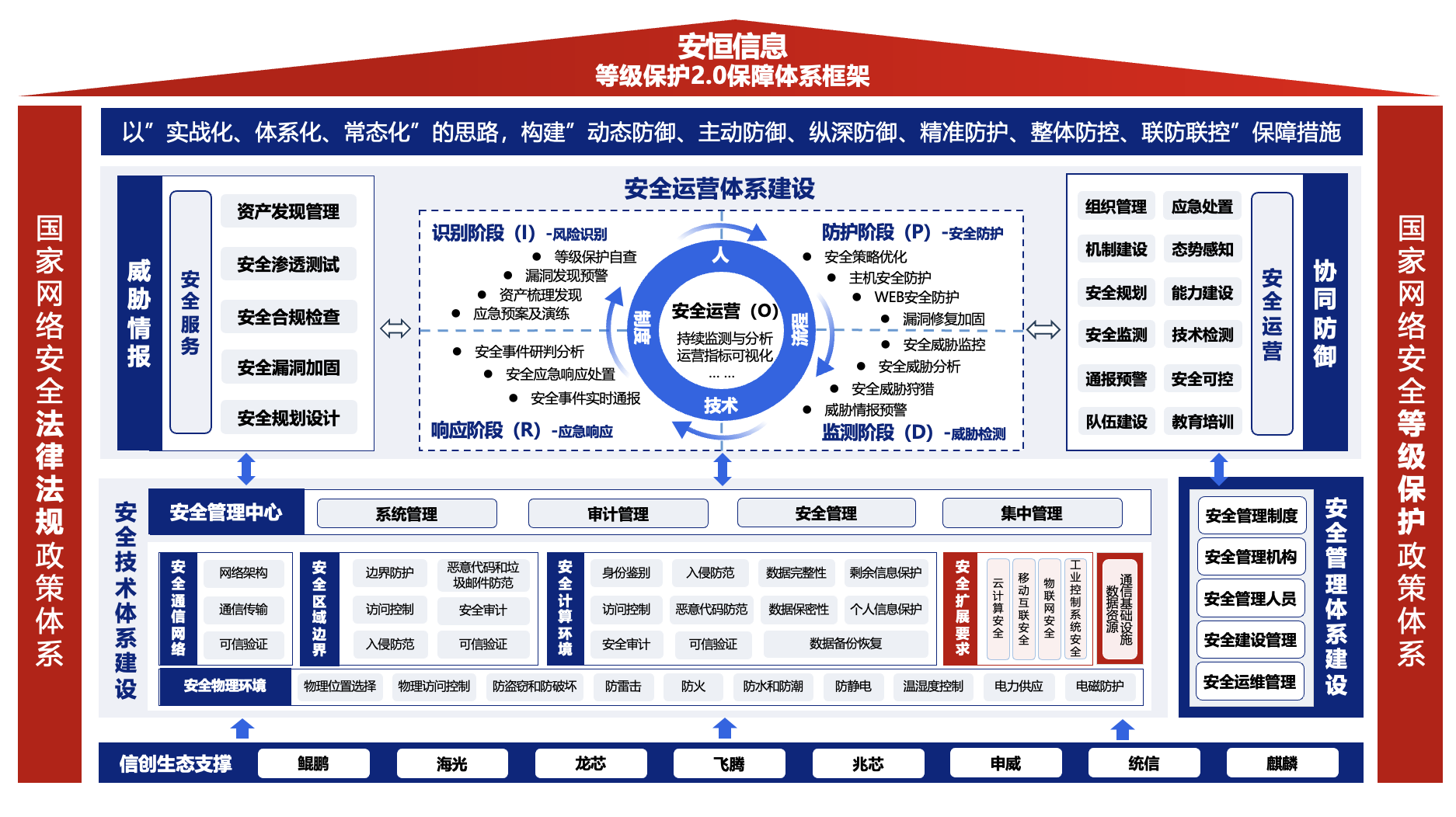 通过新技术(可信计算技术、密码技术、访问控制技术、安全监测技术)、新产品、新服务,协助建立感知预警、主动防护、全面监测、应急处置的动态保障体系。
